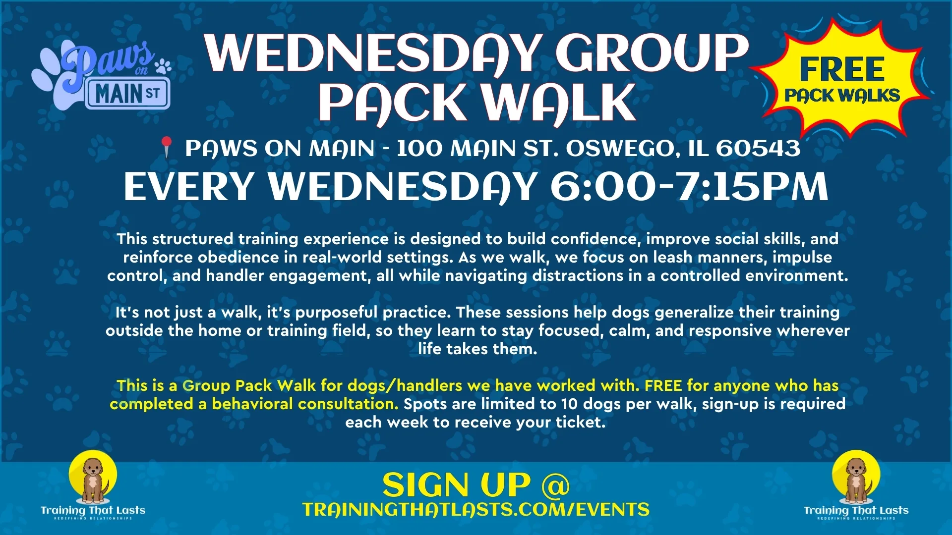 Wednesday Group Pack Walk | FREE For Current Training That Lasts Clients